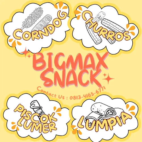 Bigmax menyediakan menu jajanan Corndog, Piscok Lumer, Churros, Lumpia. Bisa juga order via Gofood/Grabfood "Bigmax Corndog Dan Piscok Lumer"