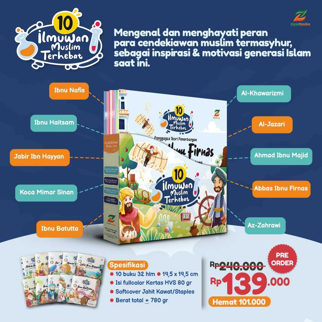 Sepaket buku ini berisi 10 buku cerita yang mengisahkan 10 ilmuwan muslim terhebat. Dikisahkan mulai dari biografinya, perjuangannya dalam menempuh pendidikan, hingga prosesnya dalam menemukan temuann...