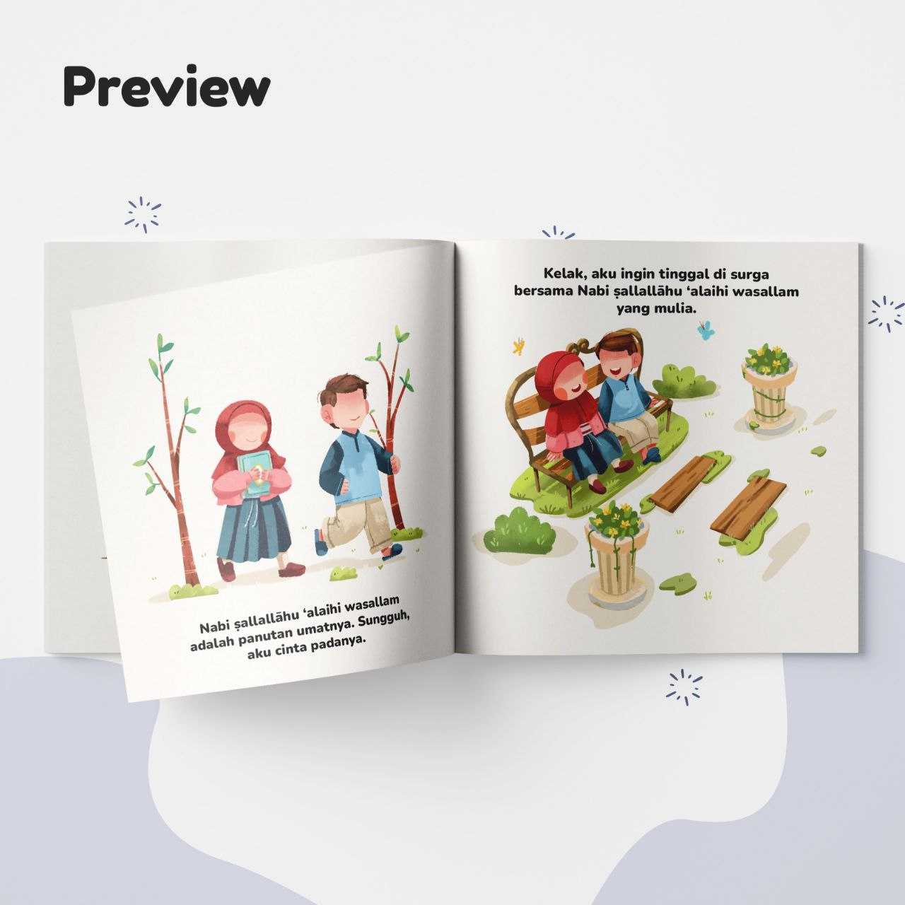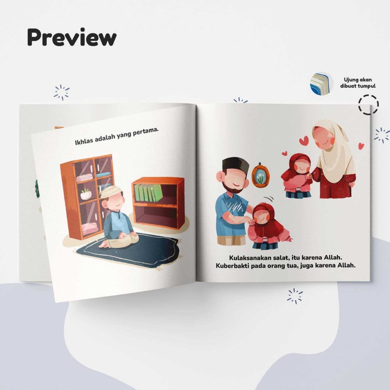 Ukuran 19 x 19 cm | 22 Hal (24 hal, termasuk halaman info dll) | Berat 0.2 Kg | Softcover Laminating Glossy Art Cartoon 260 gsm | Isi Buku Art Paper 150 gsm
