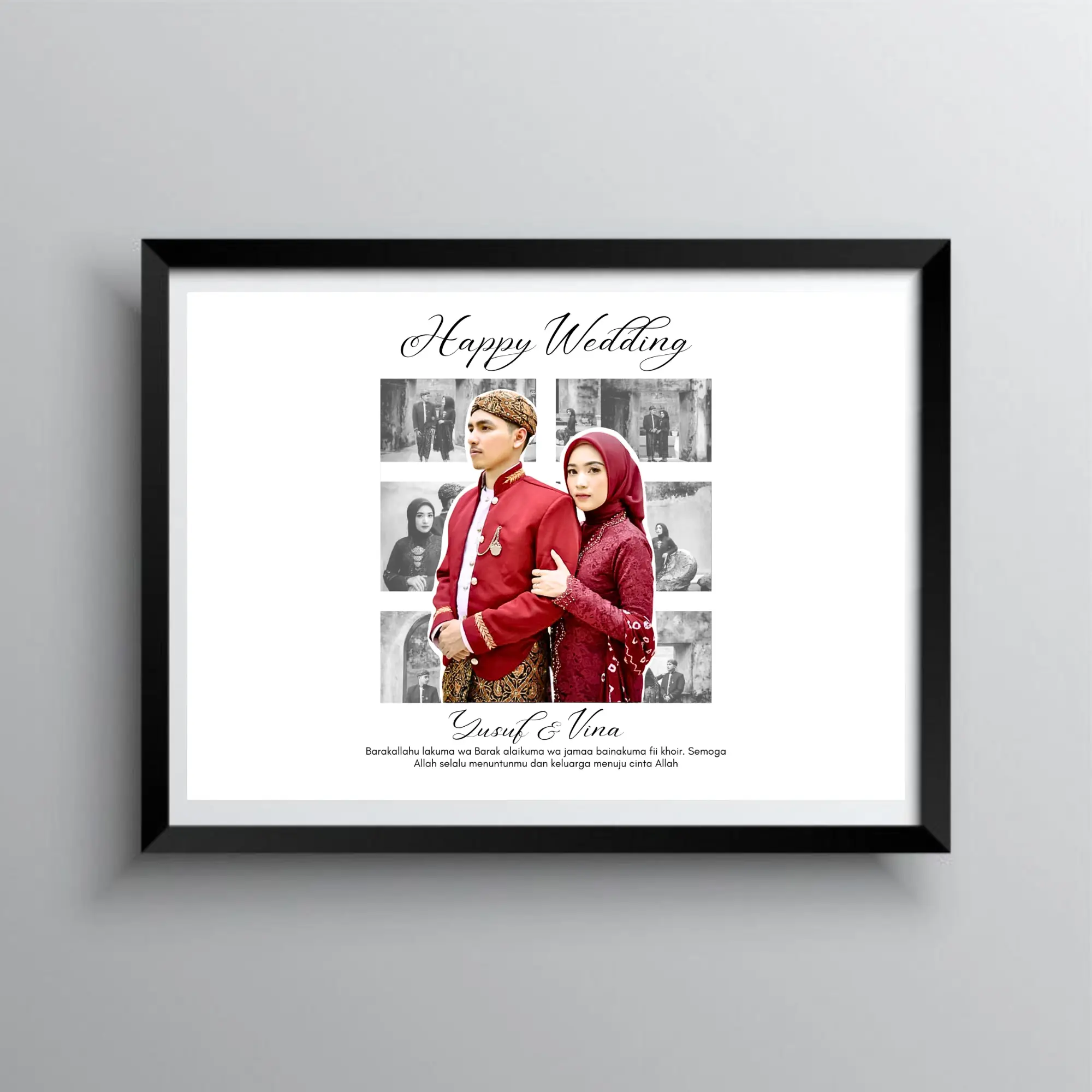 Foto langsung kirim via chat, Ukuran Frame 8R (20x25cm), Cocok untuk hadiah wedding, birthday, anniversary, farewell, Pre-order 1-5 hari tergantung antrian, Warna frame hitam/putih.