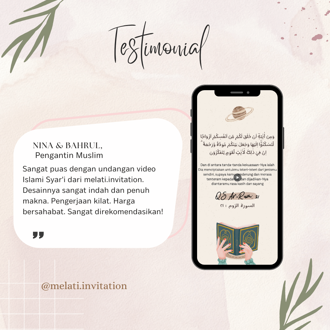 Undangan Nikah Video dengan tema Islami Syar'i Tanpa Foto yang memberi kesan islami dan elegan. Jangan Khawatir, meskipun tidak pakai foto dijamin tetap estetik dan sesuai dengan karakter kalian. ...
