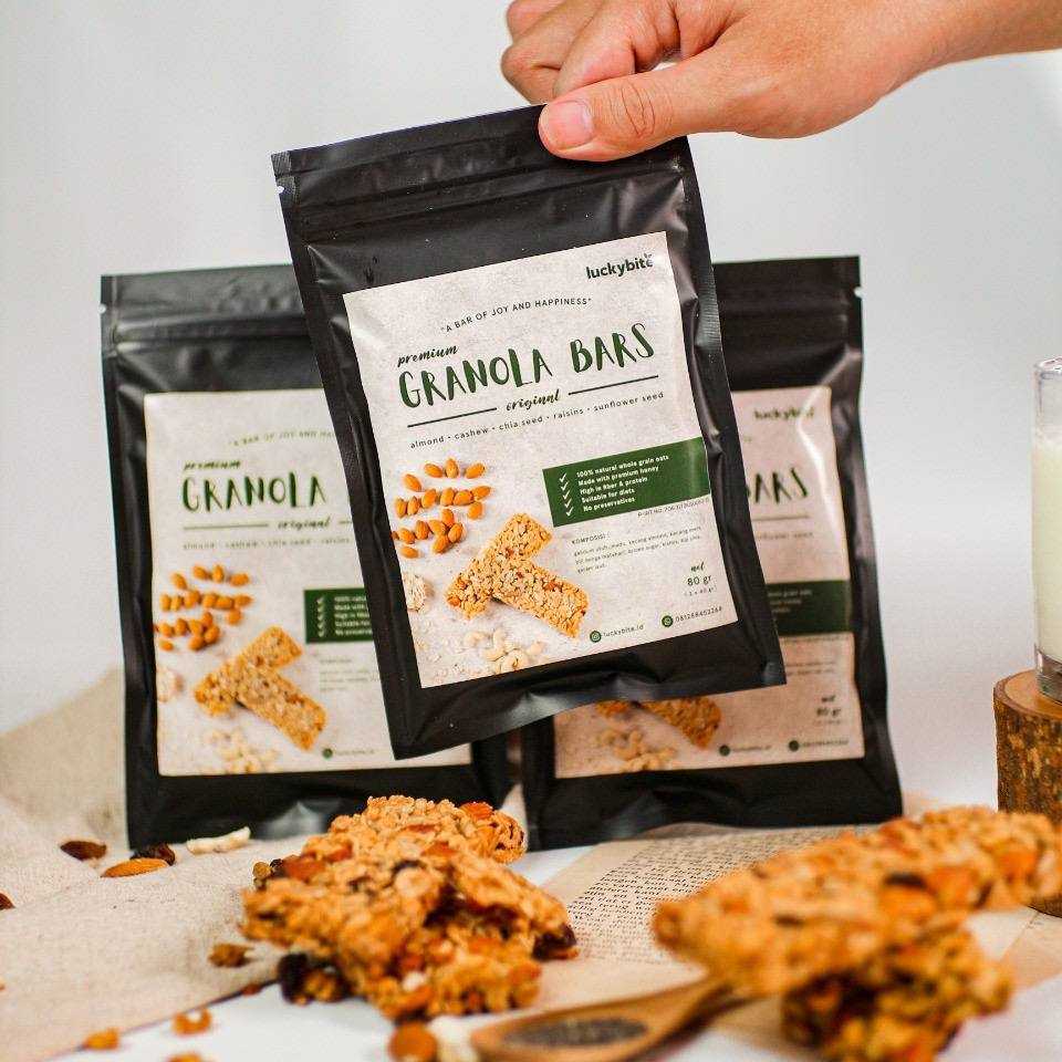 Premium Granola Bar 2 Bars Net (2 x 40 gr) 80 gr - Organic Whole Grain Oats - Almond - Chia Seed - Sunflower Seed ( Kuaci ) BERSERTIFIKAT PIRT & HALAL MUI KOMPOSISI: GANDUM UTUH, MADU, ...